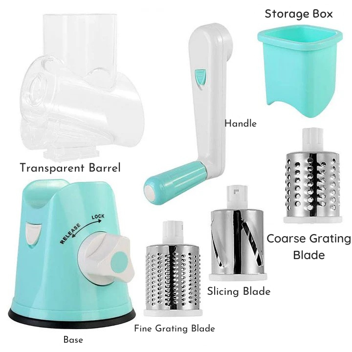 المنتج يتضمن ثلاث شفرات قابلة للتبديل: واحدة للتقطيع، واحدة للبشر الناعم، وواحدة للبشر الخشن.