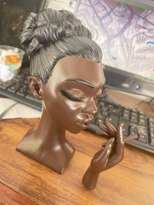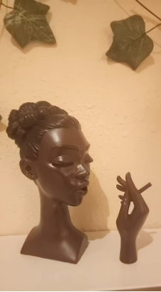口から煙が出る驚くべき効果で、彫刻が香りを放っているように見せます。