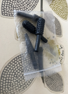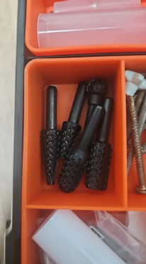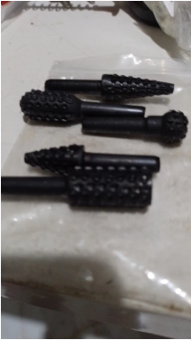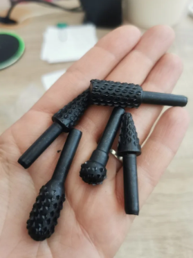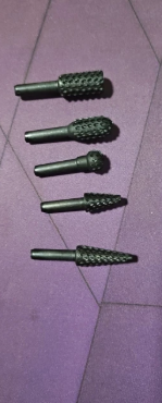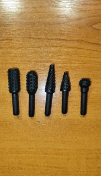 Sett inneholder flere former (sylindrisk, konisk, rund) for å tilpasse seg hver type oppgave: skulpturering, sliping, fresing, avgradning, osv.